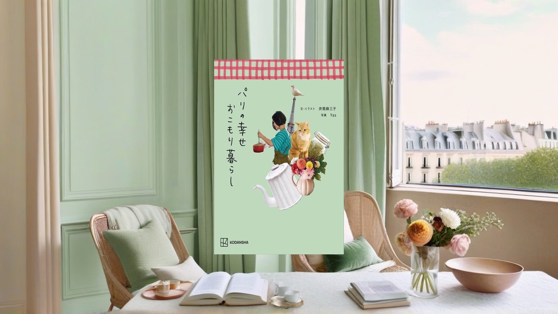 『パリの幸せおこもり暮らし』は、パリ在住の井筒麻三子が、街歩きよりも「家で心地よく過ごすこと」を主役に据えて綴るライフスタイル・エッセイです。2026年4月12日に公開された mi-mollet の紹介記事では、著者はもともと根っからのおうち好きで、買い物や仕事以外はほぼ家で過ごしていると説明されています。新刊では、その家時間を心地よく回すために実践しているインテリア、作り置き、家事、器集め、ベランダ時間、猫との暮らしなどがまとめられているようです。