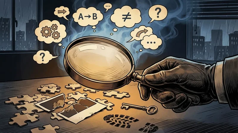 探偵が証拠を集め、仮説を立て、犯人を特定する。この過程は、認知心理学でいう演繹的推論や**仮説形成的推論(アブダクション)**に該当する。